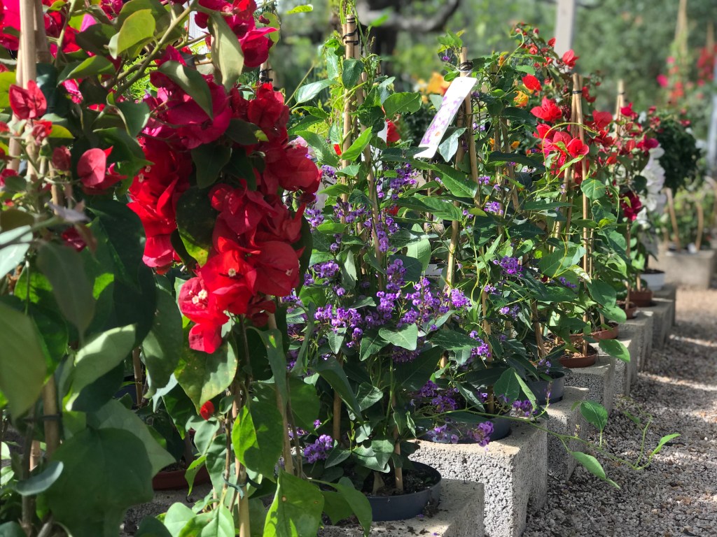 We have a wide variety of climbing plants such as Bougainvillea, Jasminum, Mandevilla, Hardenbergia, Pandorea, Dipladenia, etc.